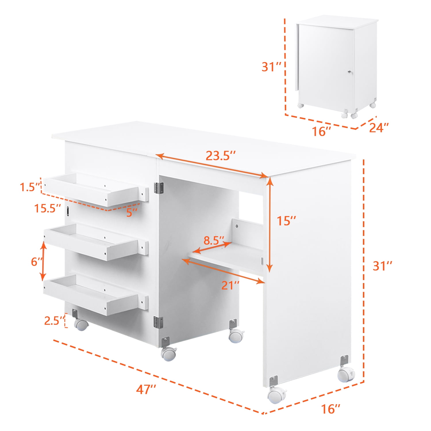Foldable Sewing Craft Table W Storage Shelf Cabinet For Home W Wheels Numoonllc